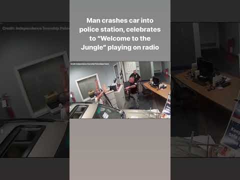 WATCH: Man crashes into police station while blasting “Welcome to the Jungle” #news #police #shorts