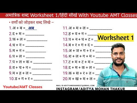 Worksheet 1 Amatrik Shabd/Hindi Seekhe With AMT Classes