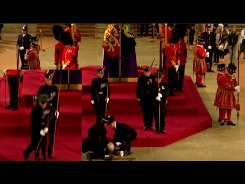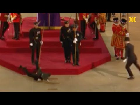 Royal guard collapses while guarding the Queen's coffin