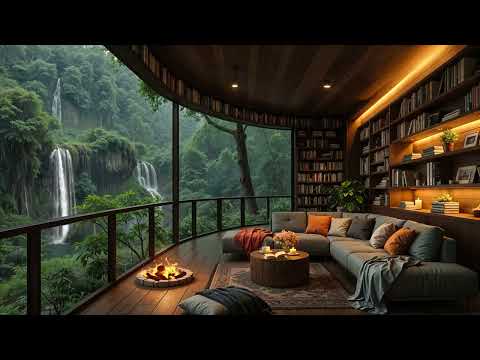 Jazz Relaxing Music - Cozy Reading Nook with Soft Rain & Fireplace Sound for Work & Study