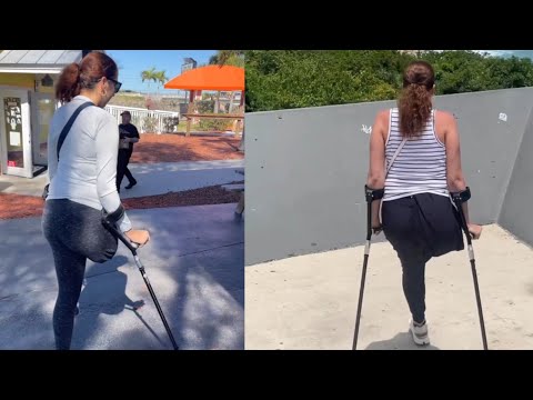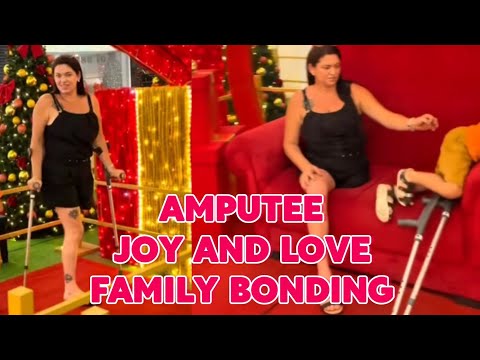 Amputee woman adaptive crutches user: life after amputation family time out
