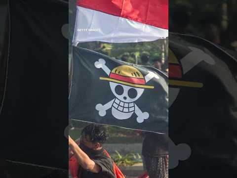 protest in Indonesia using strawhats pirate flag | onepiece flag used against Indonesian government