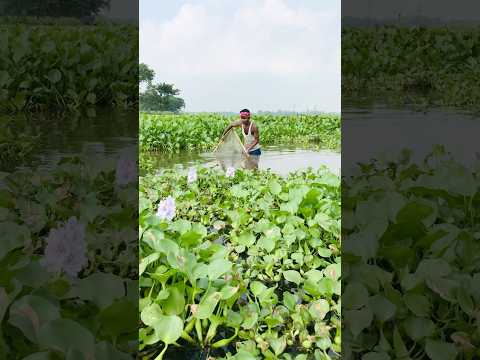 Hidden Treasures of the Wetland - Net Fishing Adventure #shortsfeed #fish #fishing #village #nature