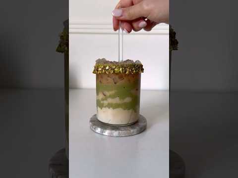 Iced Pistachio Latte🥜🍵💚#asmr #matchalatte #matcha #pistachio #pistachiolatte #latte #recipe #psl