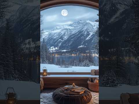 ❄️Moonlit Winter Escape: Cozy Fireplace & Snowy Cabin Ambience for Sleep & Relaxation🔥#relax #peace