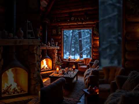 Calm & Cozy Cabin Winter Escape | Fire and Snow Sounds #fireplace #snowfall #cozycabin #cozynights