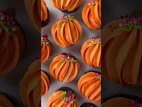 🎃 PUMPKIN CUPCAKES Tutorial: How to Pipe Quick Easy Buttercream Pumpkins, Leaves, Stems #shorts