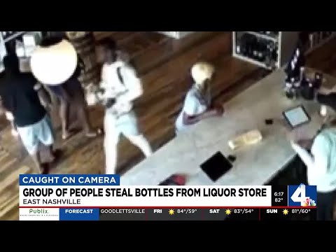 Group of people steal bottles from liquor store