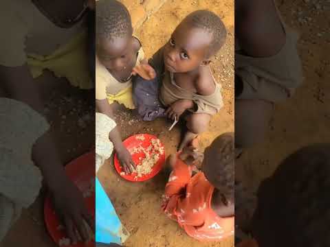 4 hungry orphaned kids sharing one plate of food 😭🥺💔 so sad #donate #support #fyp