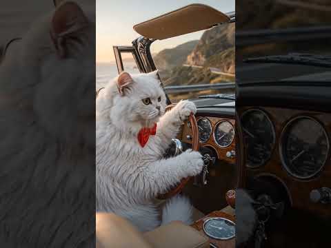 cats driving car road trip #cat #driving #reel #ai