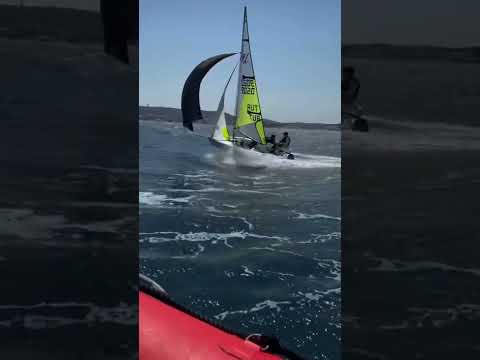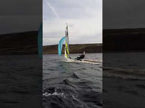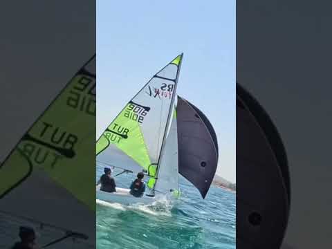 RS Feva Sailing +30 knots (boat spd 16 knots) #rs #sailing #spinnaker #shorts #heavywind #rssailing