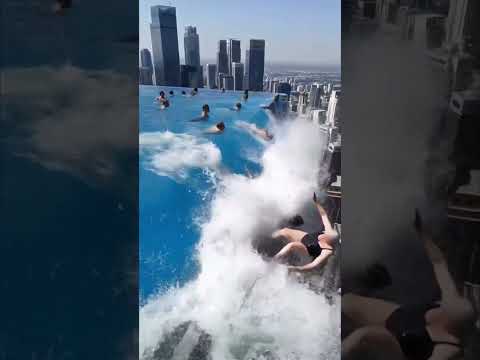 Rooftop Infinity Pool Cracks on a Skyscraper… People Panic