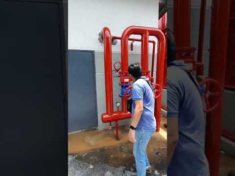 Demo of an Alarm Check Valve Assembly in a Fire Fighting Pump Room.