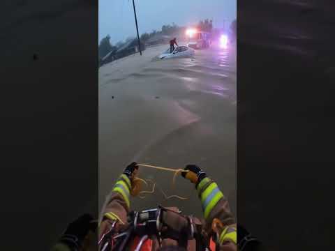 Hero Firefighter Saves Trapped Flood Victim!