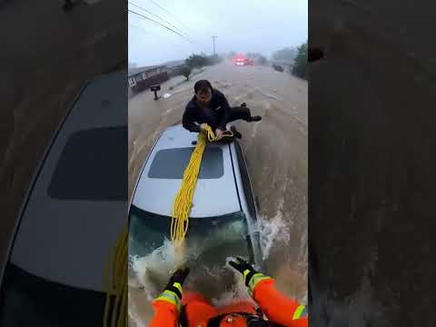 Firefighter Hero Saves Flood Victim! #firefighting