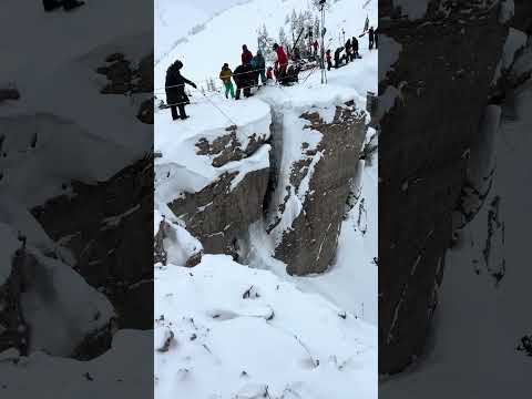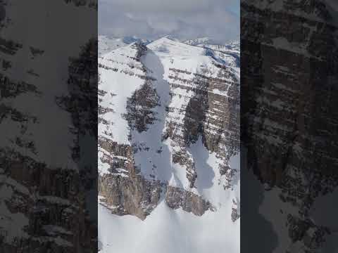@GimbalGod descends into Corbet's Couloir via the "Tool Shed" at Kings & Queens #snowboarding