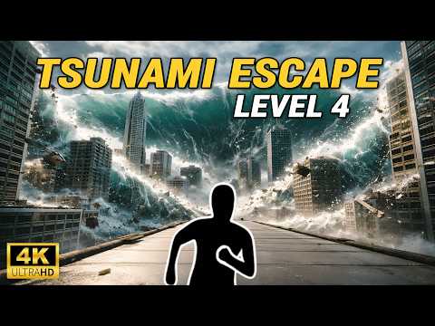 TSUNAMI ESCAPE RUN! | 4K Immersive Interactive Warm Up | Run Cardio Workout Level 4 |