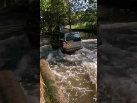 LAND ROVER BLASTS ITSELF into FLOOD. Rufford Ford