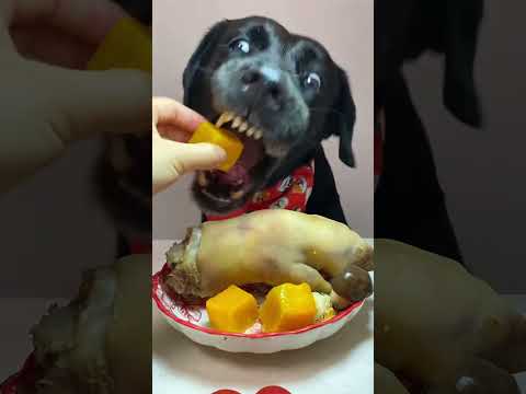I haven’t eaten steak for a long time cute pet debut plan Labrador Oh my god it’s so fragrant