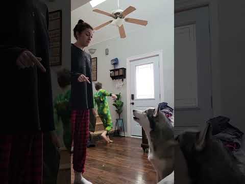 My dog yells at my other dog to play! (He’s so sassy) #dog #husky #dogs #shorts