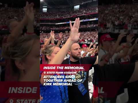 Attendees sing together at the Charlie Kirk memorial