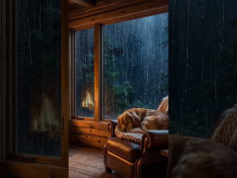 Cozy Rain Ambience in Cozy Wooden House in the forest with Rain falling on window and Crackling Fire