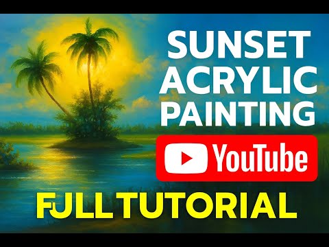 How to Draw Acrylic Sunset Painting | Relaxing Art with Soft Music | Acrylic Tutorial for Beginners