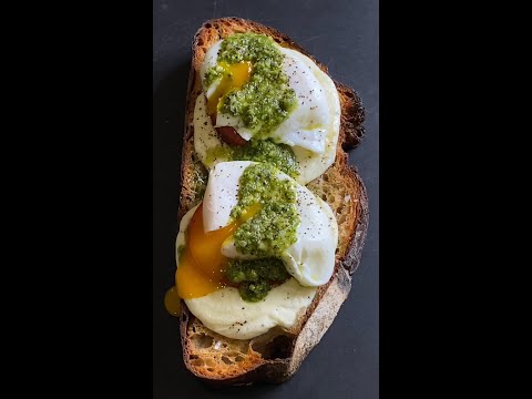 Caprese Breakfast Toast with Pesto, Poached Eggs