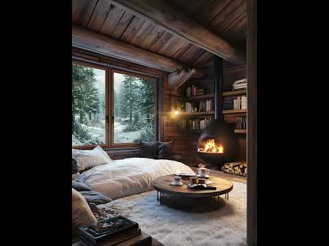 Unwind in the Perfect Winter Cabin: Snow, Blankets, and Tranquility. #relaxation #cozybedroom