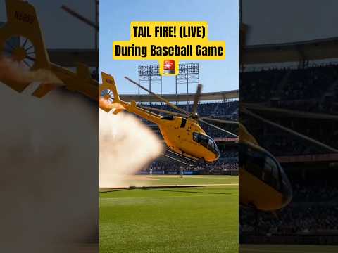 Pilot Saves Helicopter with Tail Fire at Live Baseball Game | Helicopter crash landing in baseball