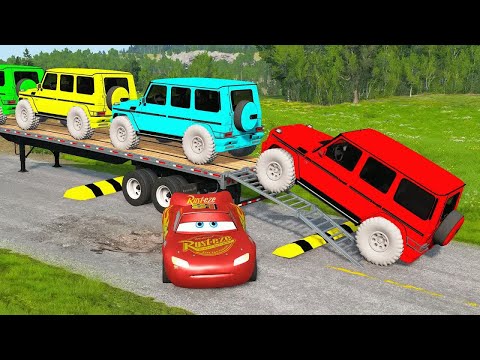 Flatbed Truck Mcqueen Transportation with Truck Pothole vs Car #62 BeamNG Drive