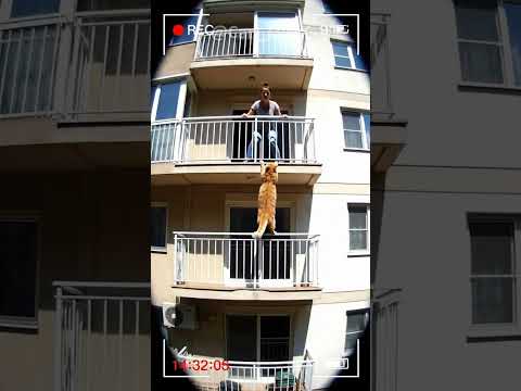 Cat Nearly Falls From 4th Floor Balcony - Woman Rushes to the Rescue! Heart-Stopping Moment