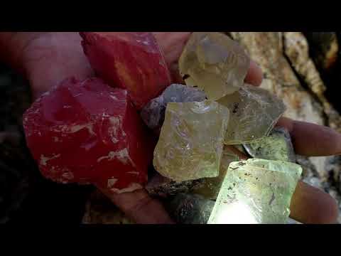 Red crystals are formed in volcanic caves by the sea. Gems, diamonds