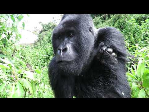 Incredible close encounter with endangered Silverback Mountain Gorilla on Mount Karisimbe in Rwanda