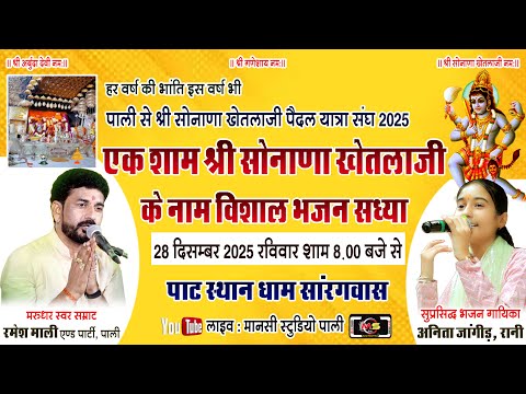 рдПрдХ рд╢рд╛рдо рд╢реНрд░реА рдЖрд╢рд╛рдкреБрд░рд╛ рдорд╛рддрд╛рдЬреА, рд╕реЛрдирд╛рдгрд╛ рдЦреЗрддрд▓рд╛рдЬреА рдХреЗ рдирд╛рдо рд╡рд┐рд╢рд╛рд▓ рднрдЬрди рд╕рдВрдзреНрдпрд╛ рдХрд╛рд▓рдВрджреНрд░реА, рдЕрдиреАрддрд╛ рдЬрд╛рдВрдЧрд┐рдбрд╝