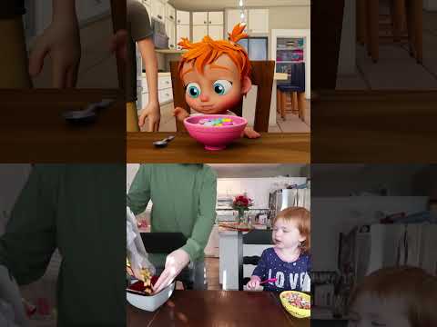 BABY ADLEY MORNiNG ROUTiNE!! Eating Cereal with DAD! cartoon vs irl over under.. hi vlog!! 👶