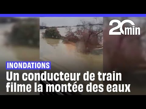 Inondations : Un conducteur filme le dernier train avant la coupure de la ligne