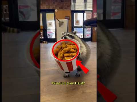 Raccoon Raids KFC for Fried Chicken—Crowd Loses It 🦝🍗 #funnyanimals #raccoon #viralshorts