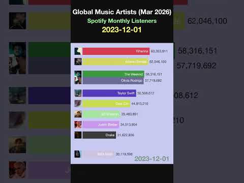 Global Music Artists (Mar 2026) Spotify Monthly Listeners #shorts