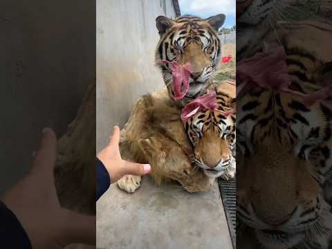Feeding big cats 🤧😳🐯 #tigercat #bigcats #tigerlife #wildcats #tiger #lion #tigerfamily #wildlife