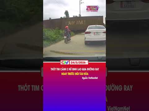THÓT TIM CẢNH 2 NỮ SINH LAO QUA ĐƯỜNG RAY NGAY TRƯỚC MŨI TÀU HỎA