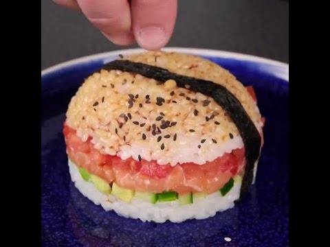 Onigiri Sushi Burger best hand food on the go ever! #sushi #healthyfood #cooking #burger #lunch