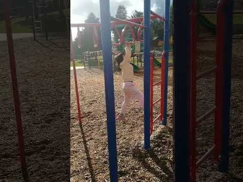 Beautiful 6 Year Old Girl Climbs on the Monkey Bars ... Playground challenge with monkey bar.