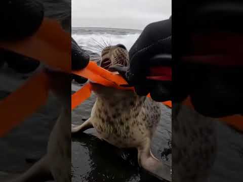 Mother Seal Approaches During Pup Strap Rescue