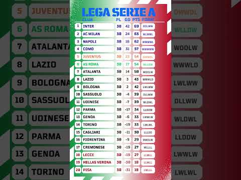 Serie A Italy Standings After Round 30 | Top 10 Table & Title Race 2025/26