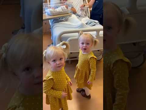 Twin Toddlers Freeze When They Meet the New Baby 😮🥹 #TwinToddlers #NewbornReaction #SiblingMoment