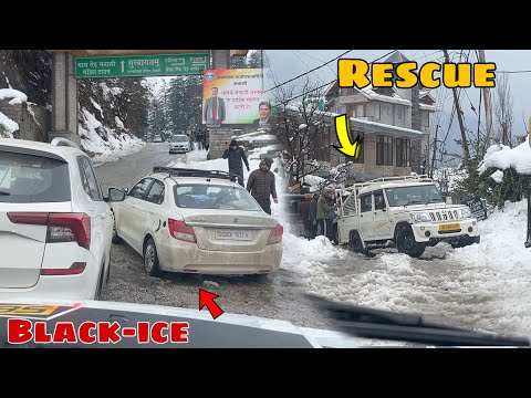 Manali Black ICE!! Black Ice sliding!! Car sliding Manali!! Snow me fas gyi car!! Car stuck in Snow