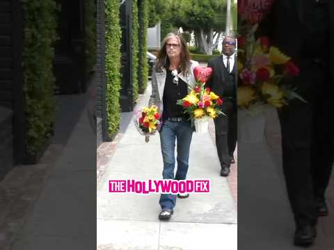 Steven Tyler From Aerosmith Brings Flowers To Celebrate His New Grandchild In West Hollywood, CA