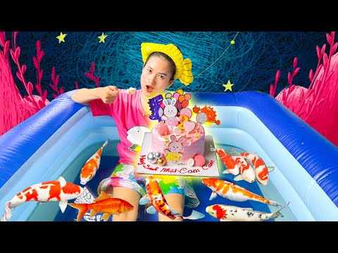 Thay nước cho bể cá - Bơi trong bể bơi thả rất nhiều cá vàng, cá koi - Part 268