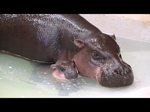 Pygmy Hippo baby makes a splash